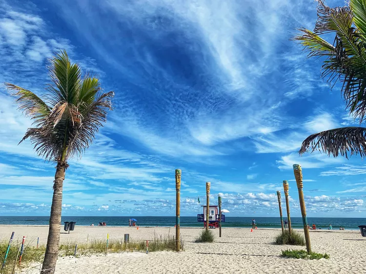 Natural environment features are also situated at a short distance from the principal beach area. One such example is the region known as the Thousand Islands, where mangrove vegetation and shallow tidal channels occur. These habitats support various forms of coastal wildlife. The coastline itself does not contain steep cliffs or rocky headlands; instead it remains mostly flat and open. Because of this landscape, wide ocean views are visible from the beach. At times, large cruise vessels travelling to or from Port Canaveral may also be seen moving slowly across the distant horizon.