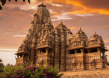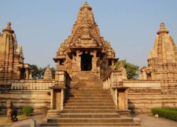 Nestled among the ancient stones of Khajuraho, Madhya Pradesh, the Lakshmana Temple is a holy shrine where devotees pray to ...