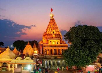 Mahakaleshwar Jyotirlinga Temple, stands by the quiet banks of the Shipra River in Ujjain, Madhya Pradesh, dedicated to Lord Shiva, ...