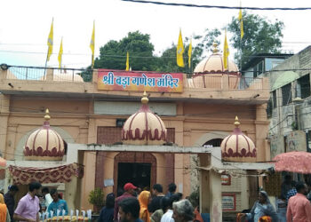 Close to the sacred Mahakaleshwar Temple by the Shipra River in Ujjain, Madhya Pradesh, stands the Bada Ganesh Ka Mandir, ...
