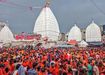 In Deoghar, Jharkhand, near the Mayurakshi River, the Baidyanath Temple is a sacred spot where folks come to pray to ...