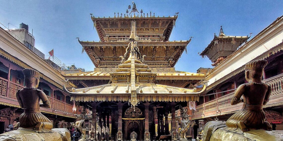 It is a three-storey golden pagoda temple of Shakyamuni Buddha, built in the 12th century by King Bhaskar Varman. The temple, which is in fact a Newari Buddhist monastery, is often called a living museum because of its intricate carvings, stunning metal works, and stone statues with an ornate interior. It is UNESCO-listed as part of the Kathmandu Valley and Patan Durbar Square complexes.