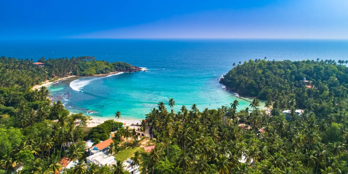 Hiriketiya Beach is a curved coastal stretch located on the southern shoreline of Sri Lanka, within the Dikwella Divisional Secretariat area of Hambantota District, roughly 180 kilometres to the south-east of Colombo. The bay follows a clear half-moon shape and measures close to 300 metres across, bordered by low headlands covered with thick vegetation. These natural barriers reduce wind exposure and help keep the water relatively calm and clear for most of the year.