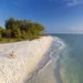The natural scenery features wide, open beaches lined with bushland from the national park, low dunes, and coastal scrub. There are no cliffs or large rocks, just clean sand often scattered with shells, protected by nearby marine and land ecosystems. This mix of extremely white sand, calm waters, and preserved surroundings gives the beach a peaceful, almost postcard-like atmosphere.