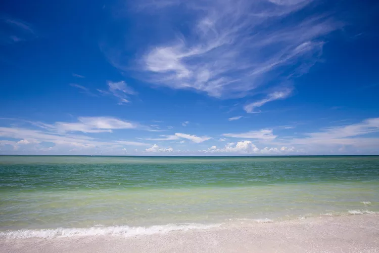 Keewaydin Island’s beaches are covered with soft white sand, mostly made of fine quartz, which gives it a powdery texture. Walking along the shore without shoes feels easy and the sand can also stay cool even when the sun is strong. The shallow Gulf waters are clear often showing turquoise shades and sometimes fish or shells can be seen not far from the edge. The waves usually remain calm, which makes the area better suited for wading or swimming than for surfing or stronger water currents.