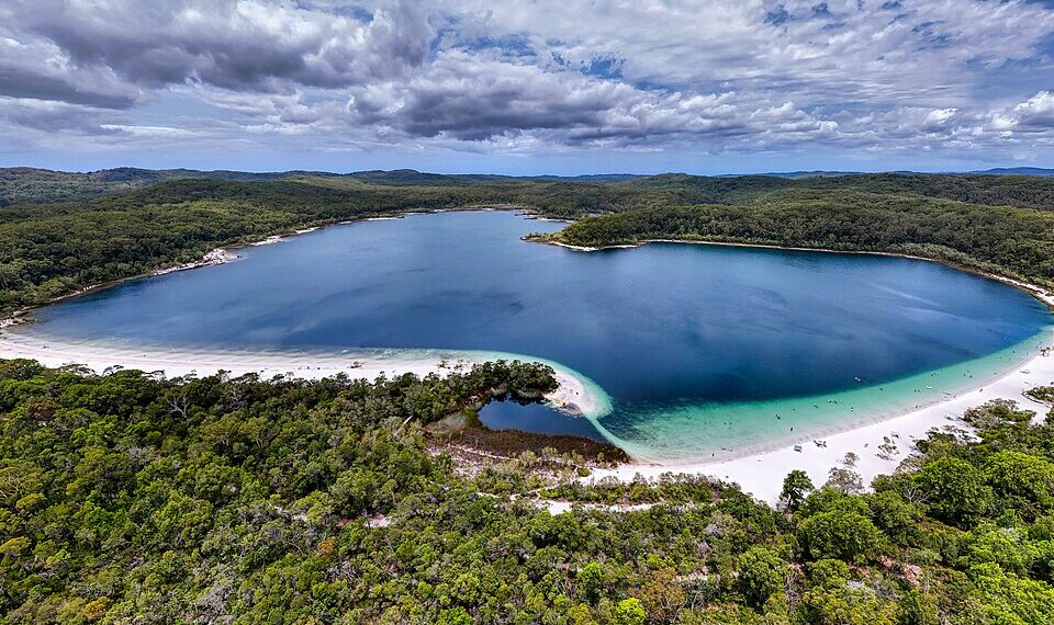 Lake McKenzie, also called Boorangoora, is located in the center of K’gari (formerly Fraser Island), the world’s largest sand island, within Queensland’s Great Sandy National Park. This perched freshwater lake is known for its very white silica sand and clear turquoise water, which looks almost unreal in its purity. Unlike usual lakes or beaches, it is filled only by rainwater with no connection to groundwater, making it one of the cleanest natural swimming spots. The sandy bottom works like a natural filter, giving the water its bright clarity and vivid colour, while the surrounding rainforest and sand dunes enhance the lake’s protected, pristine setting inside a UNESCO-listed area.