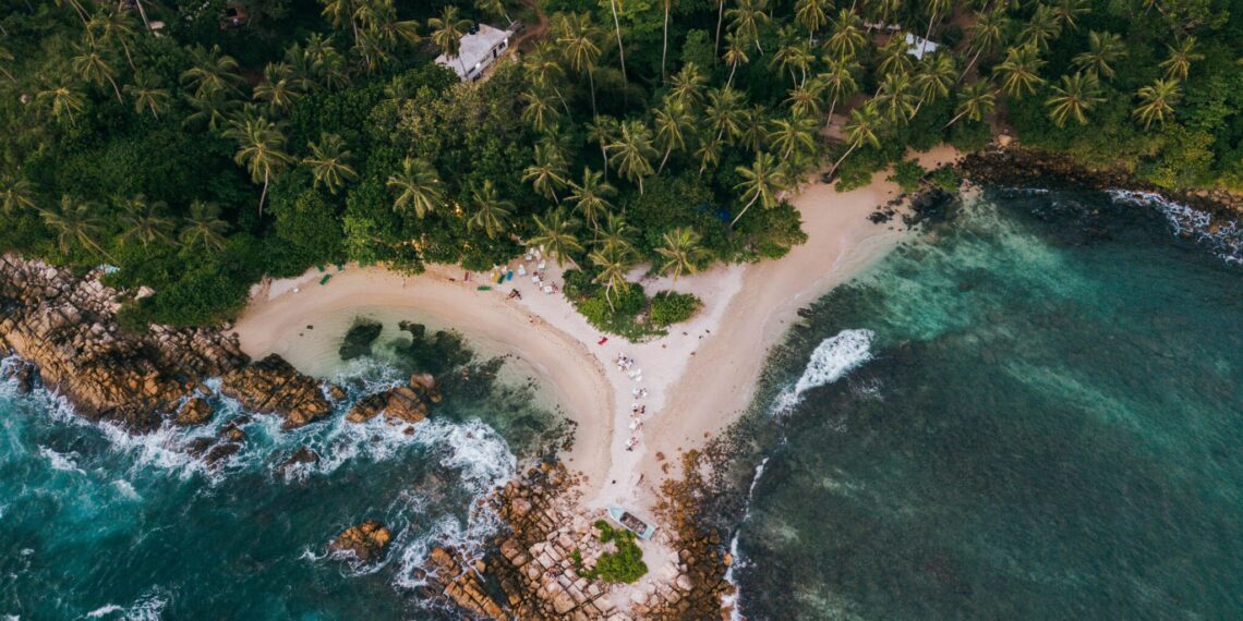 Secret Beach, often referred to locally as “Secret Beach Mirissa” and at times associated with the name Ussangoda Beach, is a small and relatively concealed coastal cove along Sri Lanka’s southern shoreline. It lies roughly two to three kilometres west of Mirissa town, within the Matara District. The beach itself forms a short curve of sand, estimated at around 150 to 200 metres in length, with sand that ranges from golden to light brown in colour. The bay is bordered by modest rocky formations and dense stands of coconut trees, which together create a naturally protected setting.