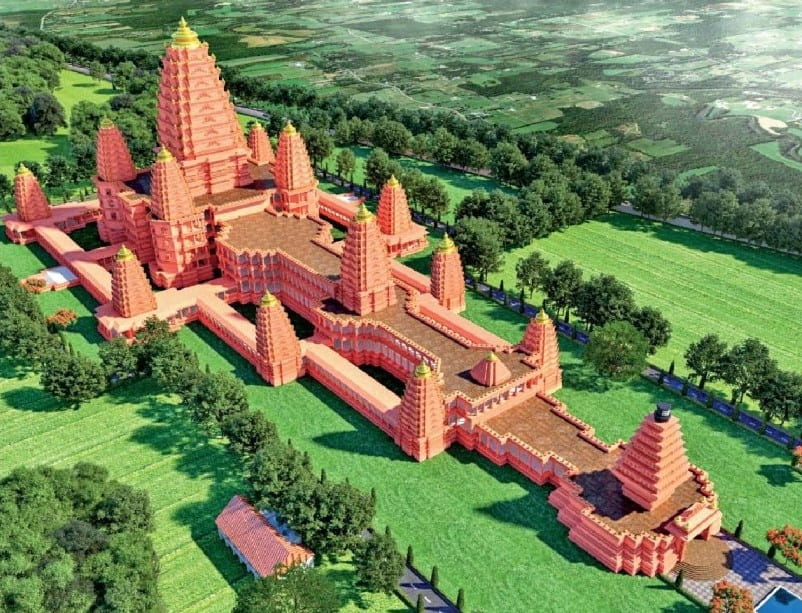 The Viraat Ramayan Mandir is designed in a grand Nagara style with hints of Southeast Asian influence, large in scale yet spiritually rich. Constructed using stone and modern materials, it aims to be both timeless and sturdy. The main sanctum, dedicated to Lord Rama and Sita, will feature detailed carvings depicting scenes from the Ramayana. A side temple will house what is planned as the world’s largest Shivling, along with 18 smaller shrines for figures like Hanuman and Ravana. The temple’s dimensions are set at 1,080 ft long, 540 ft wide, and 270 ft high, with a central spire even taller than Ayodhya’s Ram Mandir, capped with kalashas on multiple shikharas.
