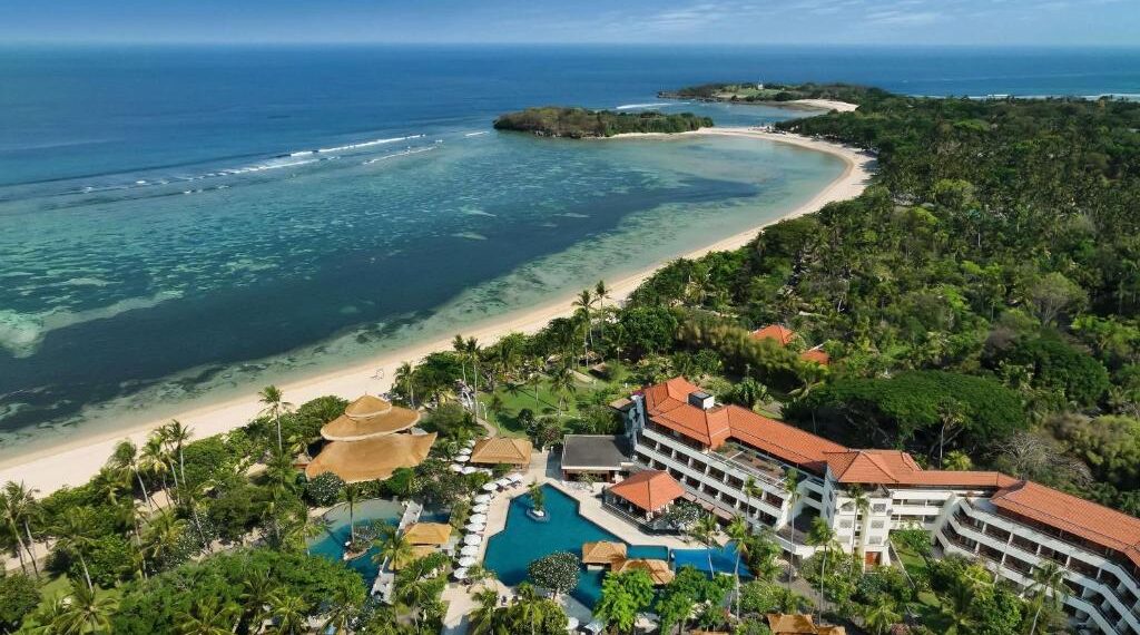 The area is frequently visited by international tourists, family units, and individuals attending conferences or other formal gatherings who prefer a coastal setting that appears organized and somewhat removed from heavily commercialized districts. Various leisure facilities can be found within the zone or in its immediate surroundings, among them a golf course, spa and wellness centers, and certain locations arranged for cultural exhibitions or performance activities, though availability may differ slightly depending on operational schedules.The site lies at an approximate distance of 15 kilometers from Ngurah Rai International Airport, allowing access that is relatively direct under normal traffic circumstances. Owing to its separation from more densely active districts such as Kuta, the surroundings tend to feel quieter and less congested, although periods of traffic buildup are not entirely uncommon.
