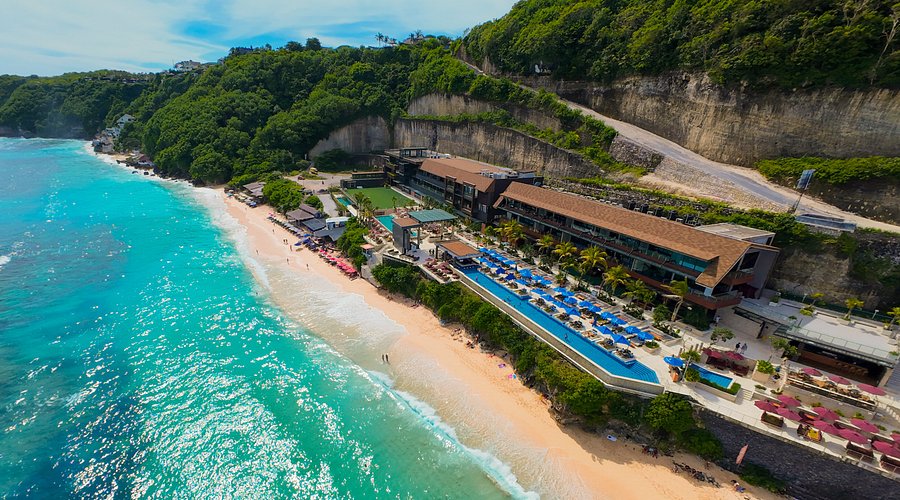 One of the major characteristics of White Rock Beach Club is its raised infinity pool, which visually blends into the Andaman Sea giving the impression of hovering above the water. This visual is further enhanced by the natural rock formation surrounding the site and give the venue its name. When combined, these elements form a setting that is frequently chosen for photography and gives a sense of privacy, despite the fact that the location can be reached without difficulty.